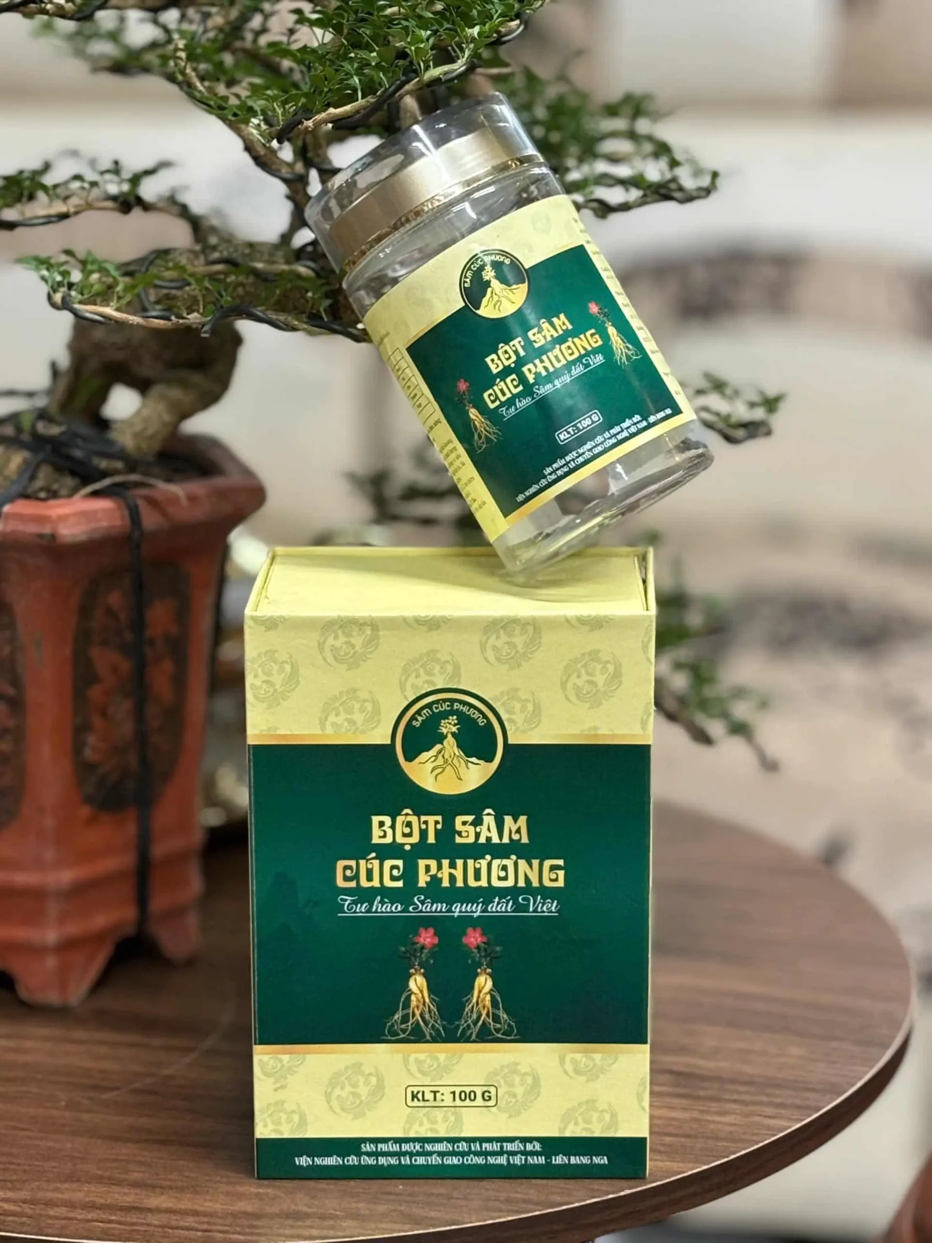 Bước 2: Cho 1 thìa (3g) bột Sâm vào lọ, đậy chặt nắp lọ, lắc mạnh một lúc cho bột sâm hấp thụ hoàn toàn vào nước là dùng được.